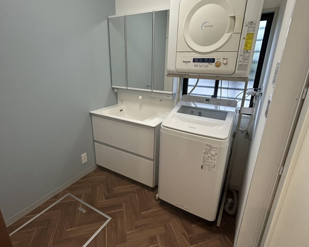 最終的には脱衣所の壁紙・床、洗面台まで統一され、