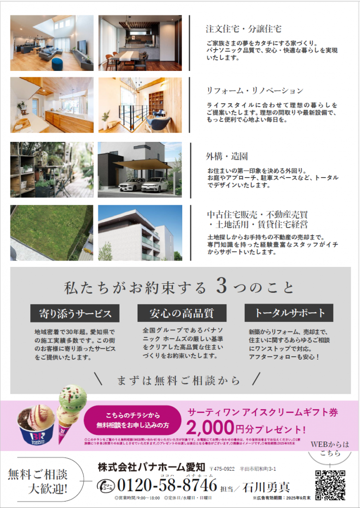 こちらのフォームから無料相談をお申込みの方…サーティワンアイスクリームギフト券2,000円分プレゼント!