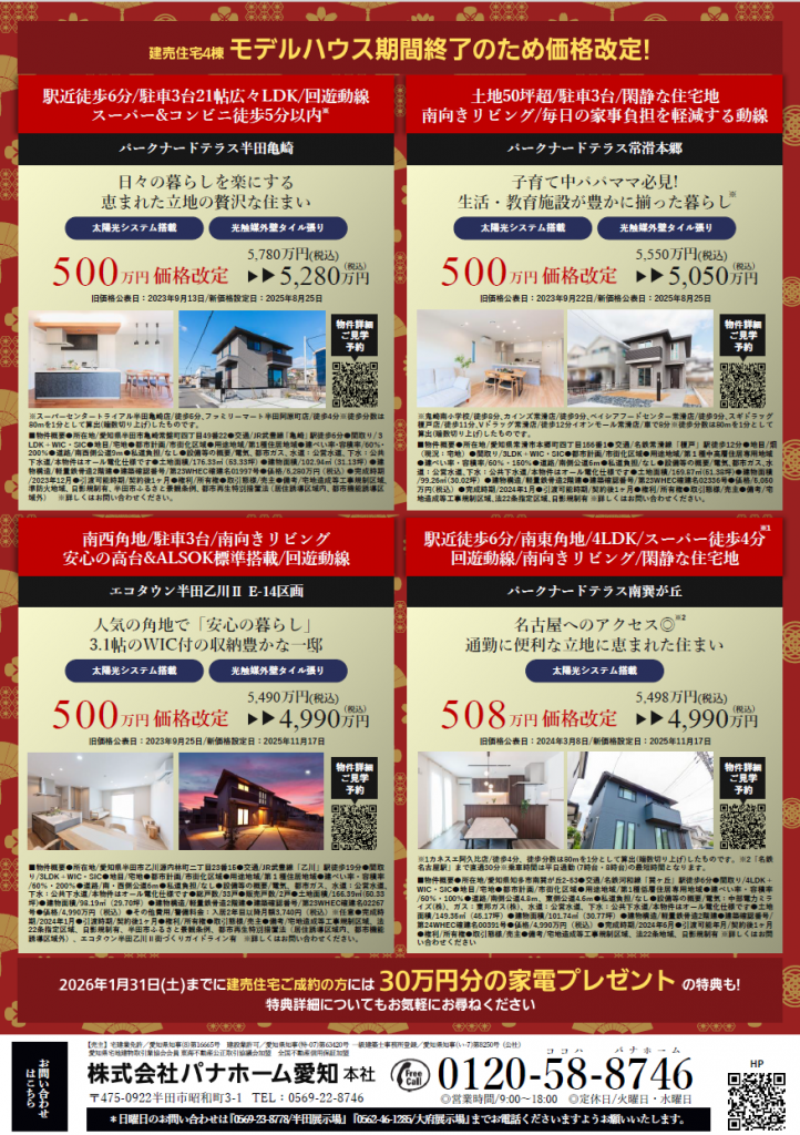 さらに、2026年1月31日(土)までに本広告掲載の建売住宅4棟のいずれかをご成約の方には…