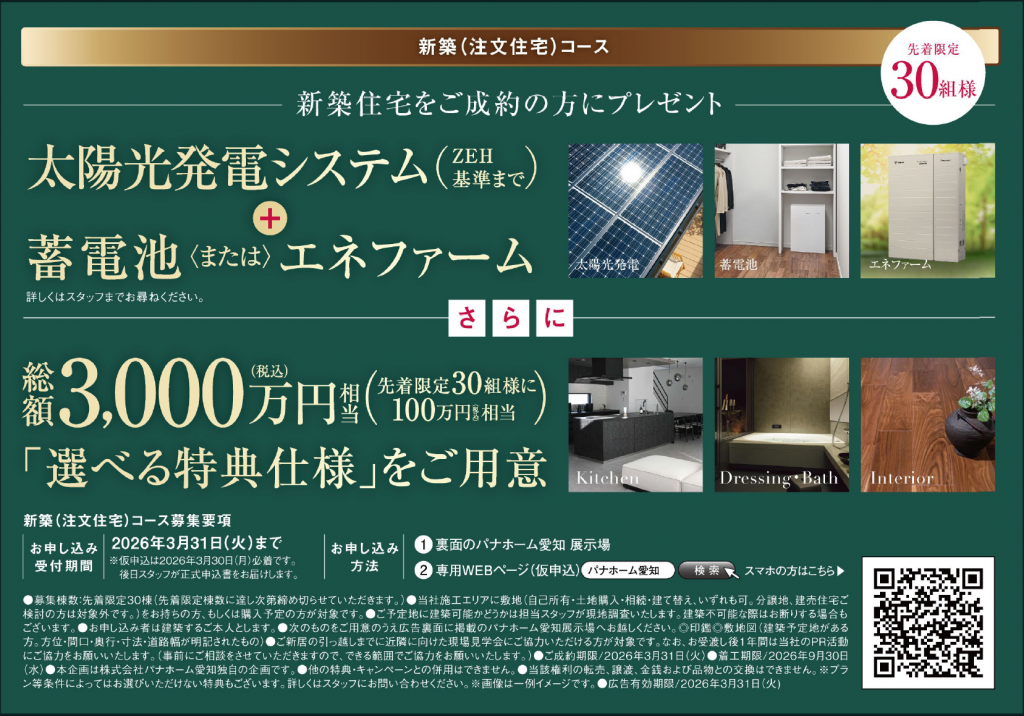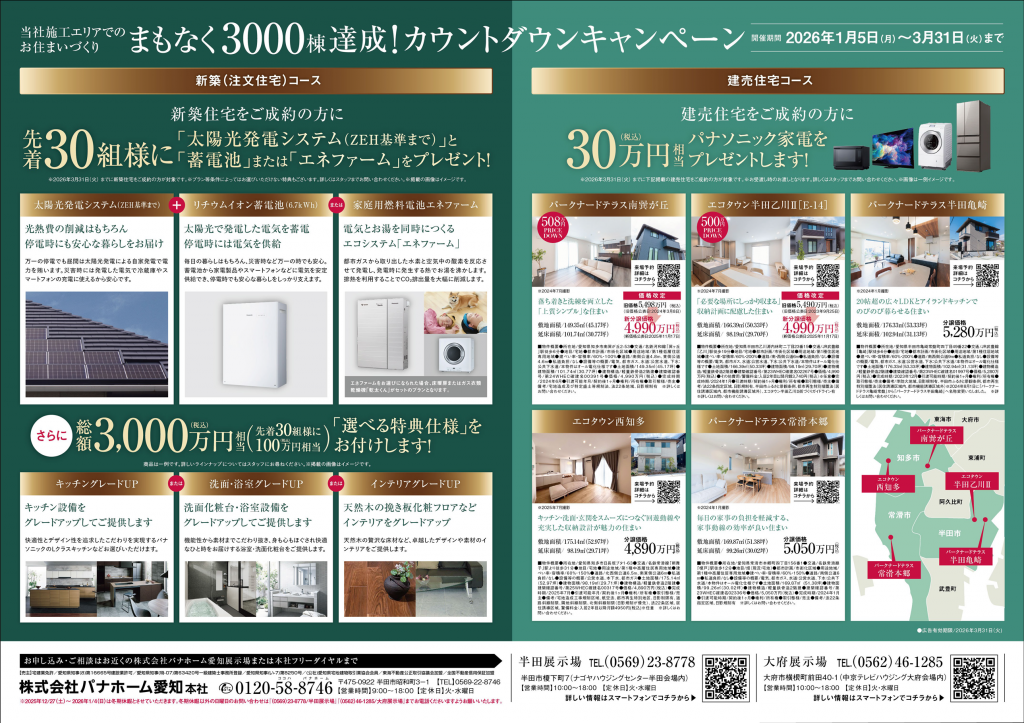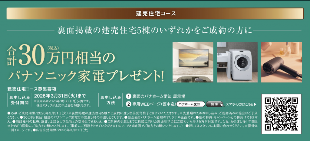 ※特典適用には条件・先着限定棟数がございます。※詳しくは上記画像クリックまたはスタッフまでお問い合わせくださいませ。