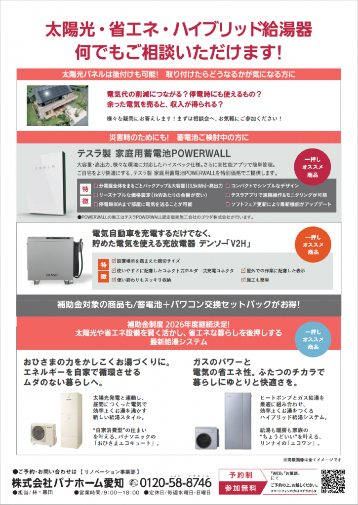 ご家庭ごとの暮らし方・電気使用量に合わせた個別アドバイス・シミュレーションも行います。(要ご予約)