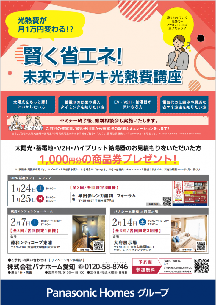 ご家庭ごとの暮らし方・電気使用量に合わせた個別アドバイス・シミュレーションも行います。(要ご予約)