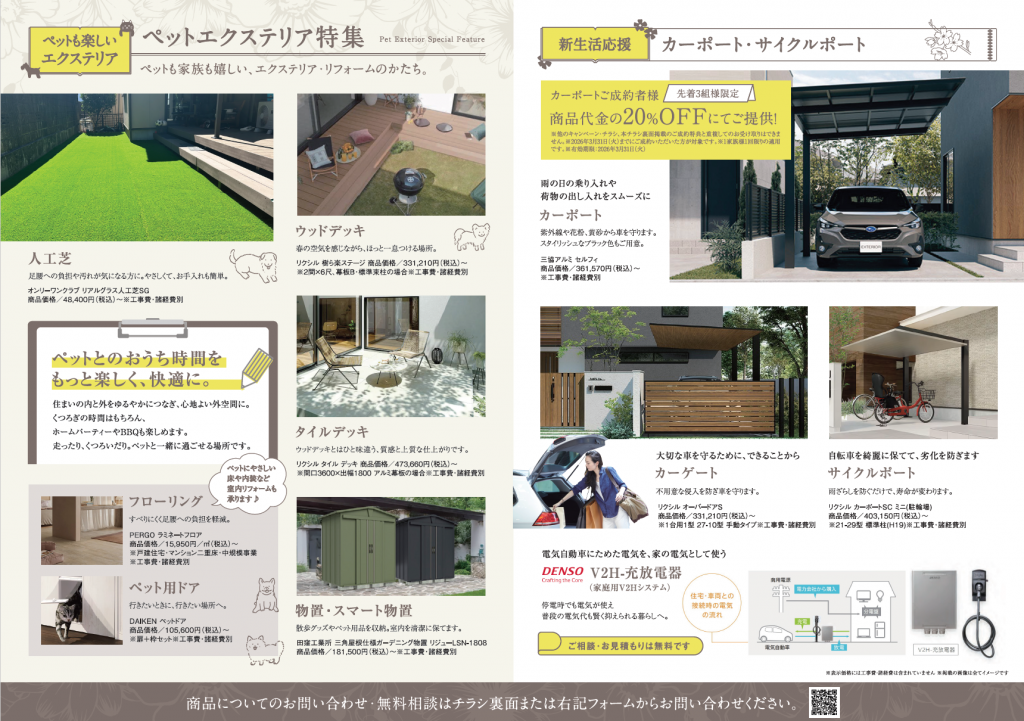 新生活を迎えるご家族様、ペットと快適に暮らしたい方に向けた外構・お庭リフォームのご提案が揃う期間限定イベントです。