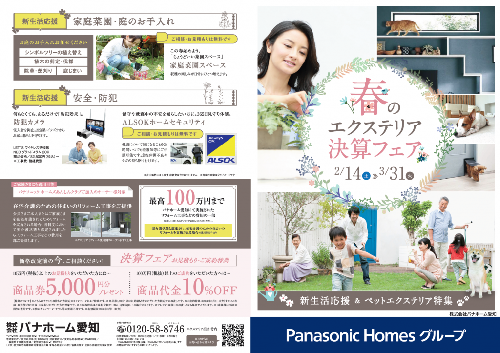 パナホーム愛知では春のエクステリア決算フェア を開催します。