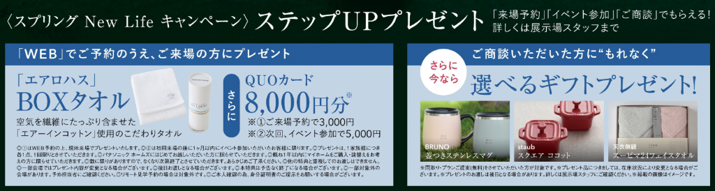 対象期間中にご成約の方には、暮らしをより豊かにする選べるモニター邸ご成約特典 をご用意しました。