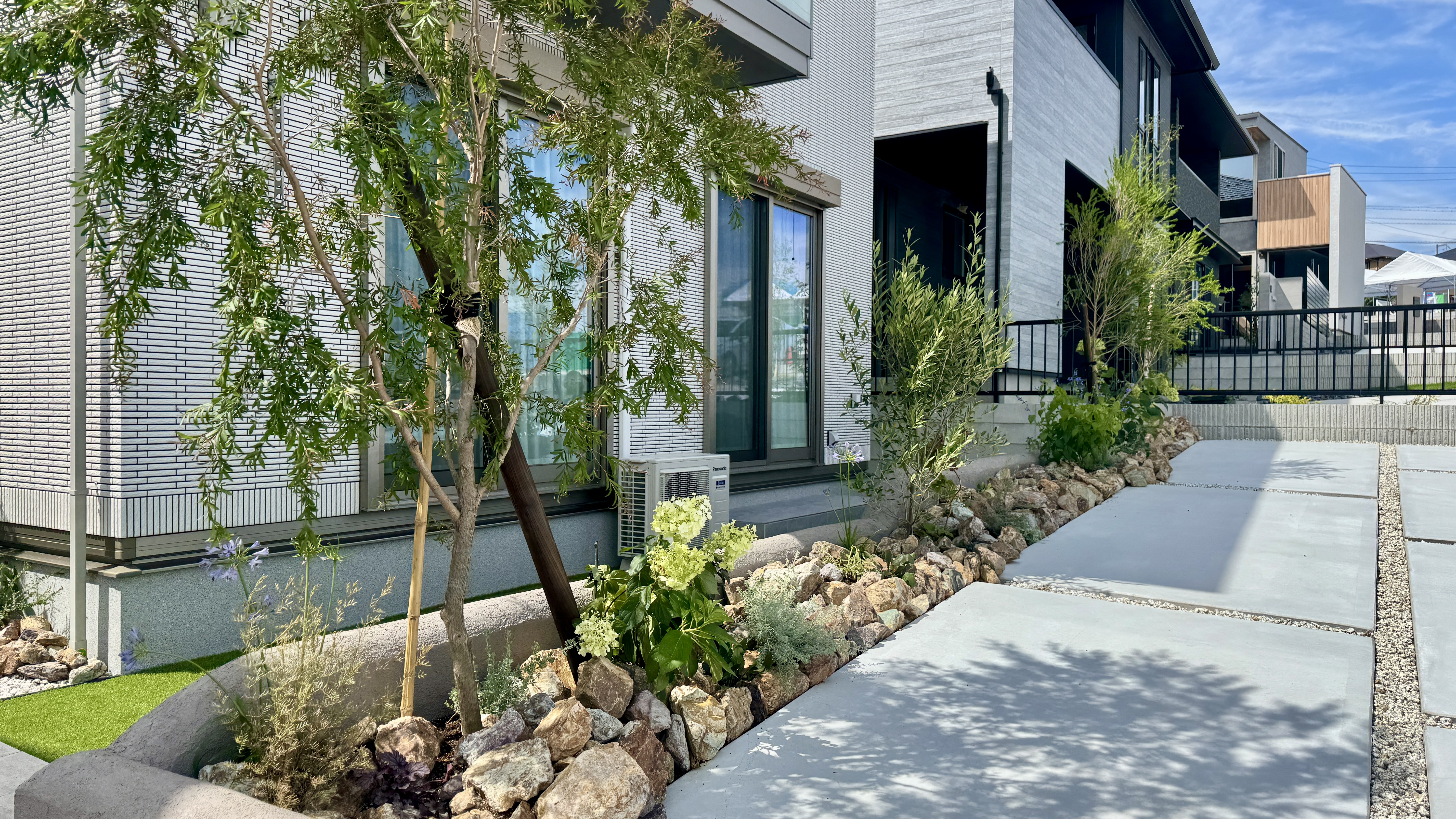 ○「オークとベージュのやさしさに、黒が静かに映えるデザイン」