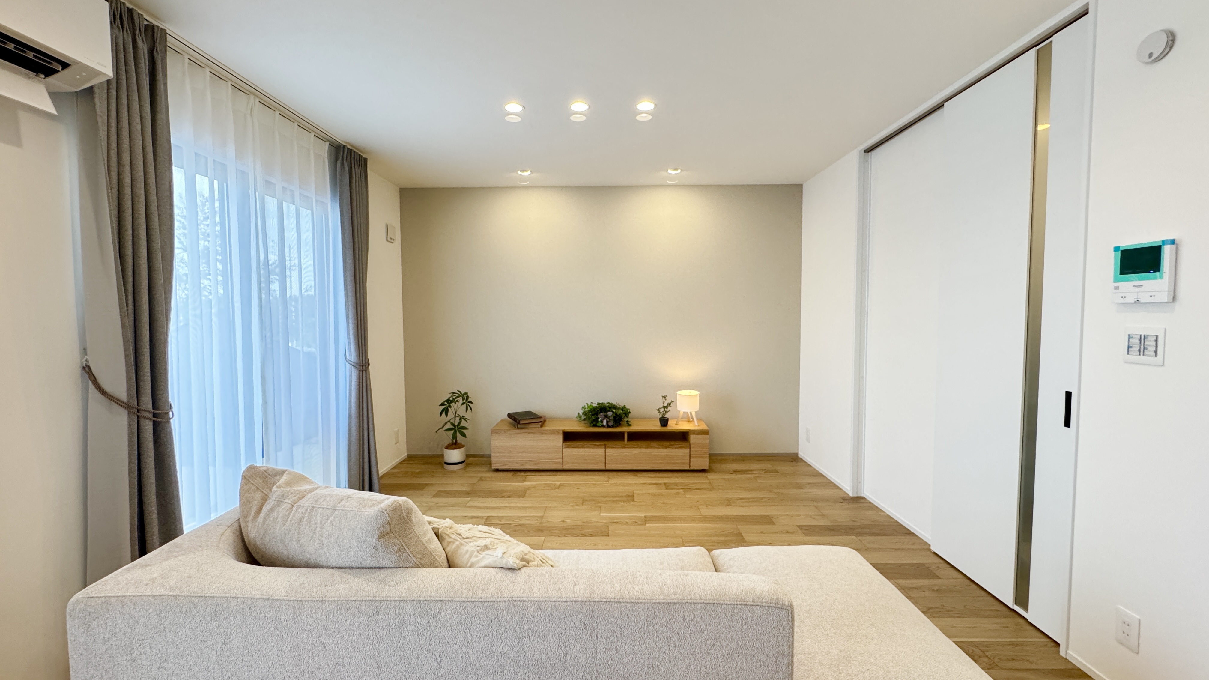 片付いた空間が、素材の質感や光の演出を一層引き立てます。