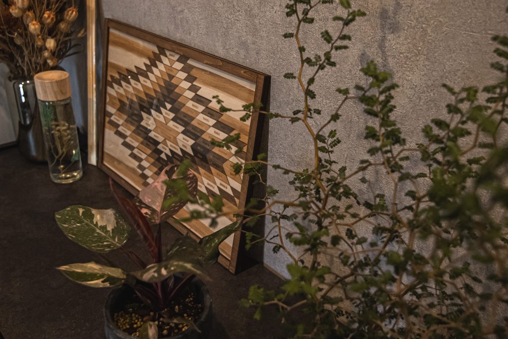 グレーの素材感を活かし、シンプルながらも上質な雰囲気を醸し出しています。